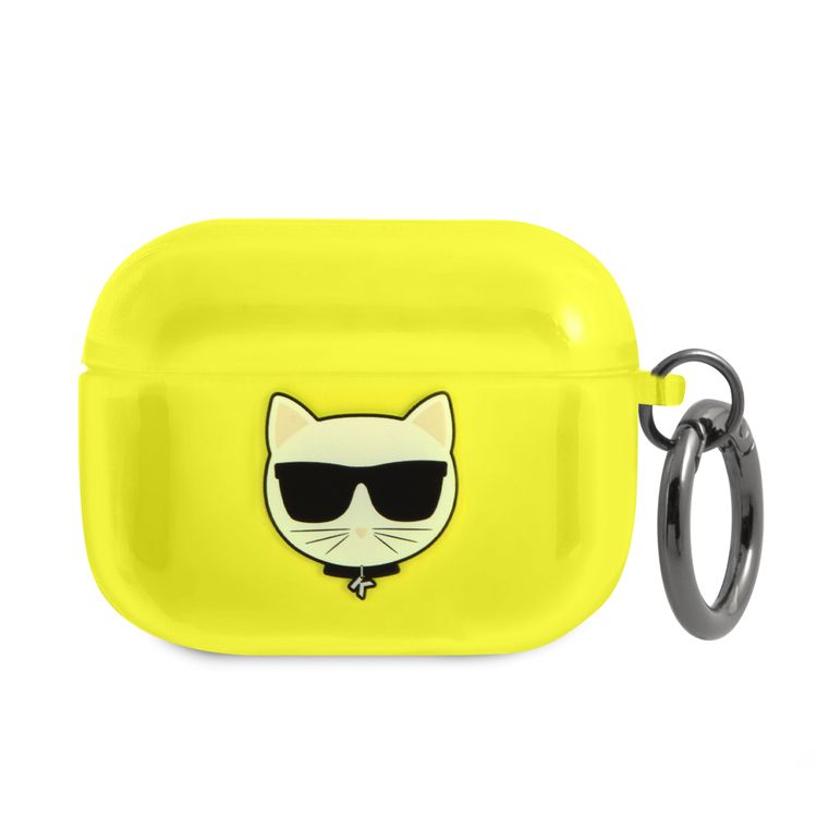 CG MOBILE Karl Lagerfeld TPU Choupette Fluo Case with Ring for Apple Airpods Pro, Scratch & Drop Resistant, Dustproof & Absorbing Protective Silicone Cover Officially Licensed Yellow