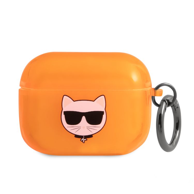 CG MOBILE Karl Lagerfeld TPU Choupette Fluo Case with Ring for Apple Airpods Pro, Scratch & Drop Resistant, Dustproof & Absorbing Protective Silicone Cover Officially Licensed Orange