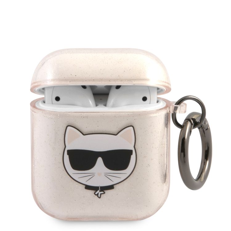 CG Mobile Karl Lagerfeld TPU Glitter Printed Embossed Choupette with Ring Case Compatible with AirPods 1 & 2, Scratch & Drop Protection Cover Officially Licensed - Gold