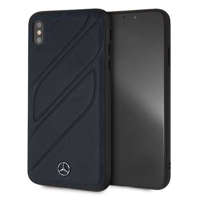 CG MOBILE Mercedes-Benz New Organic I Genuine Leather Hard Phone Case for iPhone Xs Max Officially Licensed - Navy