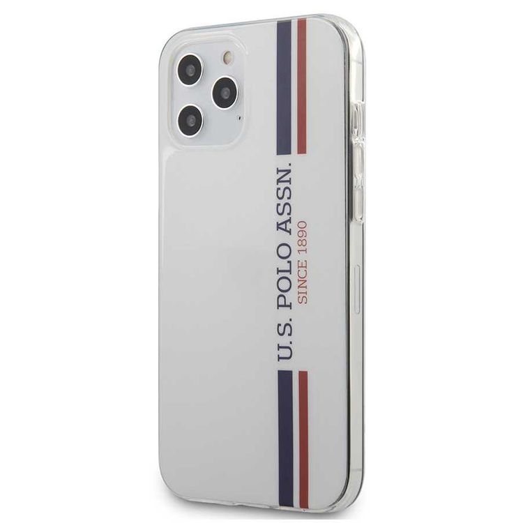 CG Mobile U.S. Polo Assn. PC/TPU Hard Case Tricolor Vertical Stripes Compatible for iPhone 12 Pro Max (6.7") Shock & Scratch Resistant, Easy Access to All Ports, Drop Protection Back Cover Suitable with Wireless Chargers Officially Licensed - White
