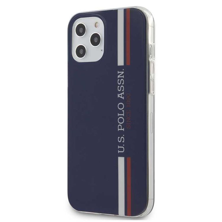 CG Mobile U.S. Polo Assn. PC/TPU Hard Case Tricolor Vertical Stripes Compatible for iPhone 12 Pro Max (6.7") Shock & Scratch Resistant, Easy Access to All Ports, Drop Protection Back Cover Suitable with Wireless Chargers Officially Licensed - Navy