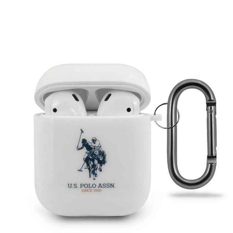 CG Mobile U.S. Polo Assn. TPU Case with Horse Logo & Anti-Lost Ring Compatible for AirPods 1/2, Scratch & Drop Resistant, Dustproof and Absorbing Protective Cover Officially Licensed - White