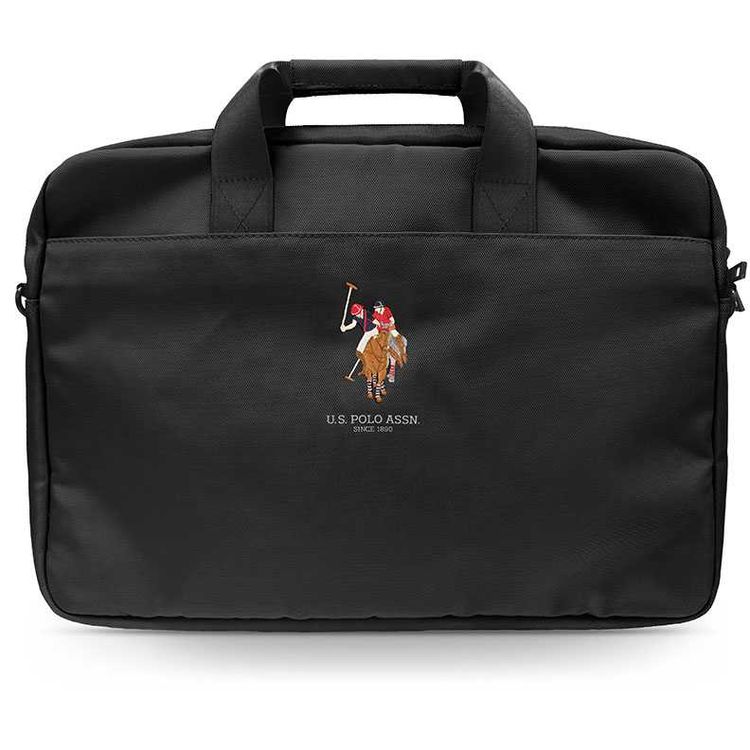 U.S.Polo Assn. 15" Computer Bag with Multiple Compartments, Adjustable Shoulder Strap, High-Quality Nylon Material, Zipper Closure - Black