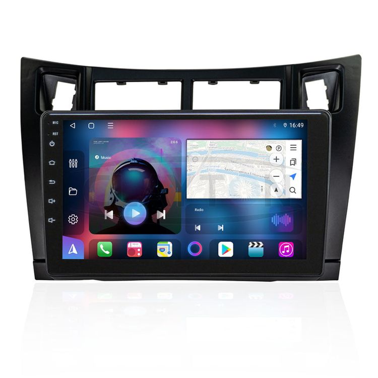 The Clayton Android Monitor, Toyota Yaris 2005-2011 is a premium multimedia with amazing features. With the latest Android version this device enhances your driving experience with seamless performance. This system boasts a stunning 9-inch Full Touch QLED screen with a resolution of 1280x720 for crystal-clear visuals. Powered by a Cortex Quad-Core 1.6 GHz processor it runs smoothly. It offers ample space for apps, media, and navigation with 8 GB RAM, and 256 GB internal storage. The system supports online and offline GPS. There are navigation maps and multiple languages pre-installed. So it is perfect for global travelers. Built-in Bluetooth allows you to make hands-free calls, stream music, and sync with Android devices. Additional features include CarPlay and Android Auto support, and Mirror Link. It is compatible with rear camera and also offers steering wheel control. It has 2 USB outputs and a subwoofer connection. You can easily use the device by just plugging and playing! The Clayton Monitor is the ideal upgrade for your Toyota Yaris' multimedia system. The package includes everything needed for installation, including power harness, RCA cables, GPS antenna, and more.