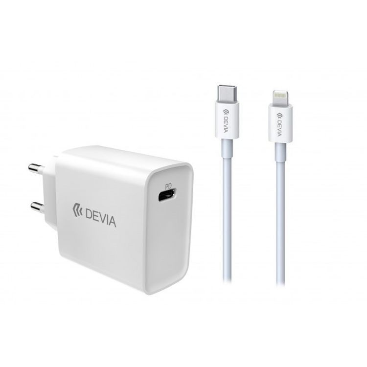 Devia Smart Series PD Quick Charger Set with Type-C to Lightning Cable UK 18W - White