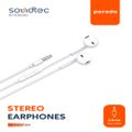 Porodo Soundtec Stereo Earphones with a 3.5mm AUX Connection, High-Clarity Microphone, 3-Button Controls, Answer & End Call - White