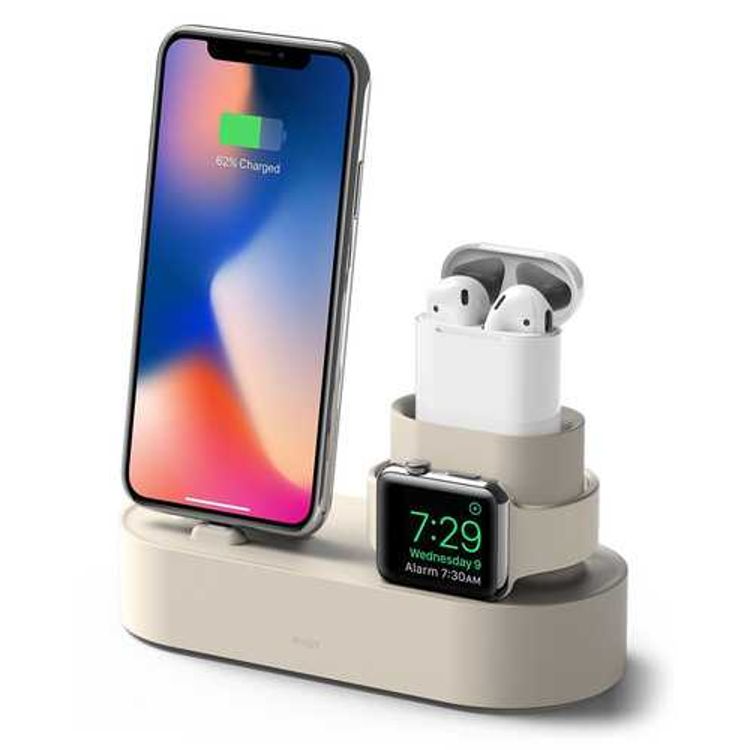 Elago 3 in 1 Silicone Charging Hub Case, Charging Dock Cover with Cable Management Compatible for All Apple Watch Series, AirPods 1 & 2, and iPhone X, XS, XS Max, XR - Classic White