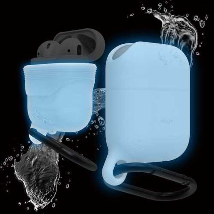 Elago Airpods Waterproof Hang Case, High Quality Silicone, Waterproof Case up to 1meter(3.3ft), Functional Design, Dustproof, Aluminum Carabiner, Impact Protection- Nightglow Blue