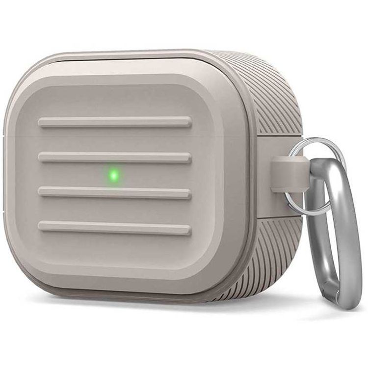 Elago Armor Case with Anti-Lost Carabiner Compatible for AirPods Pro, Dustproof & Absorbing Protective Cover Suitable for Wireless Charging - Stone