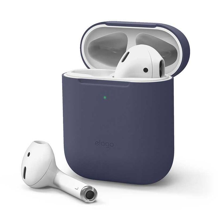 Elago Basic Skinny Case for Apple AirPods 1&2 Generation, Upgraded Premium Silicone, Front LED Visible, Dustproof Protective Cover, Compatibility With Wireless Chargers Jean Indigo