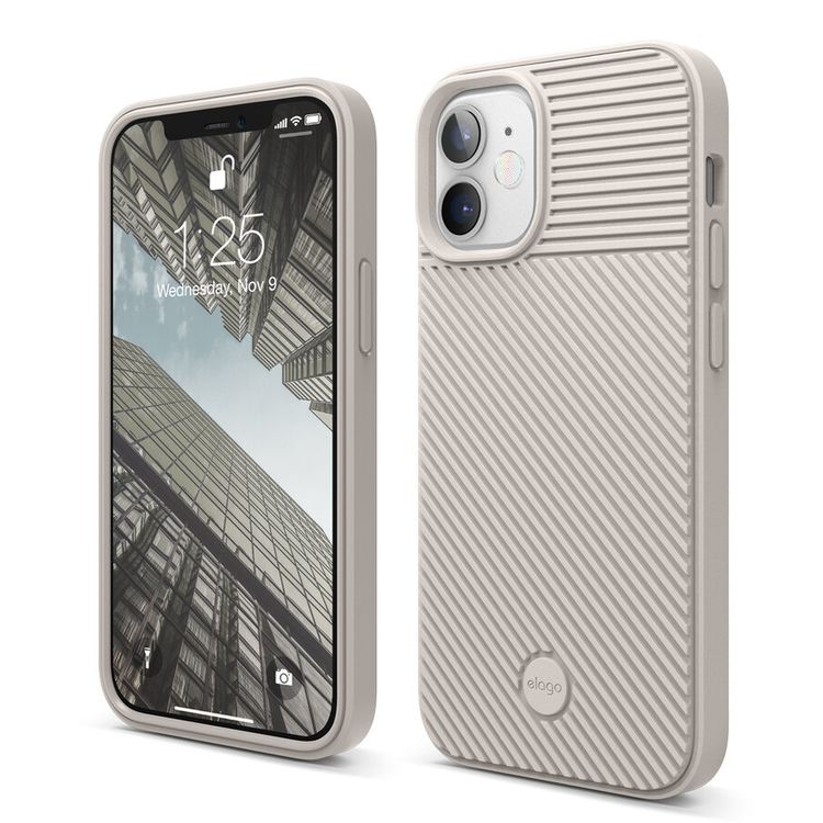 Elago Cushion Case Compatible w/ iPhone 12 Mini (5.4") Full Protection, Slim & Light, Shock Absorbing Design, Supports Wireless Charging, Raised Lip for Camera Protection - Stone