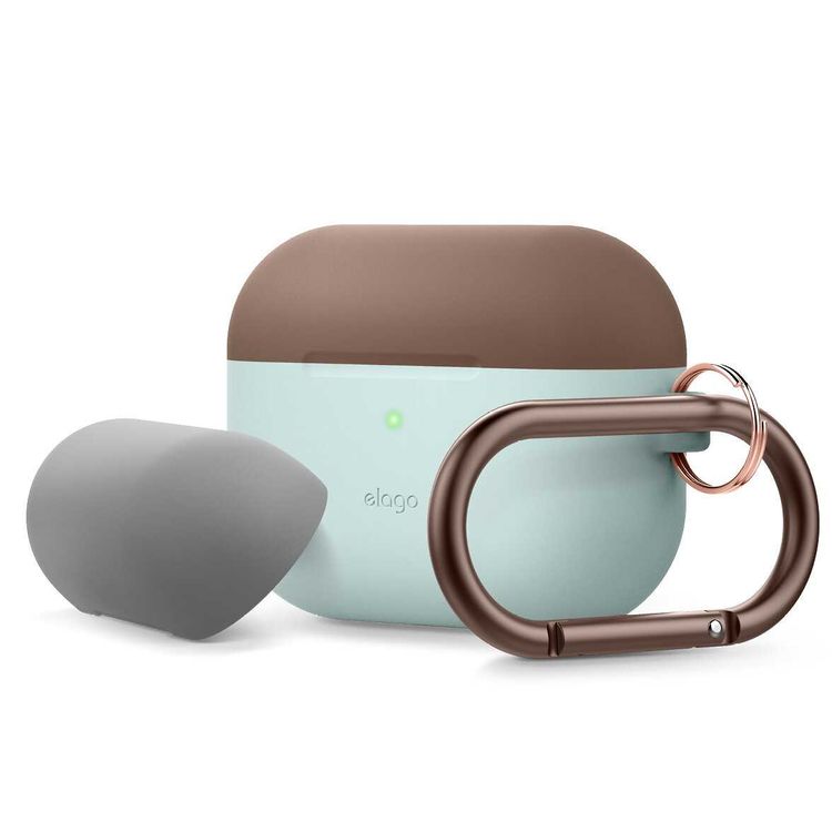 Elago Duo Hang Case for Apple Airpods Pro - Top-Dark Brown / Medium Gray, Bottom-Mint