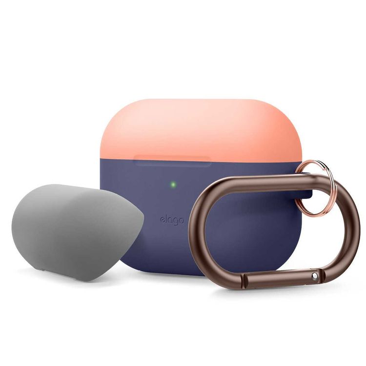 Elago Duo Hang Case for Apple Airpods Pro - Top-Peach / Medium Gray, Bottom-Jean Indigo