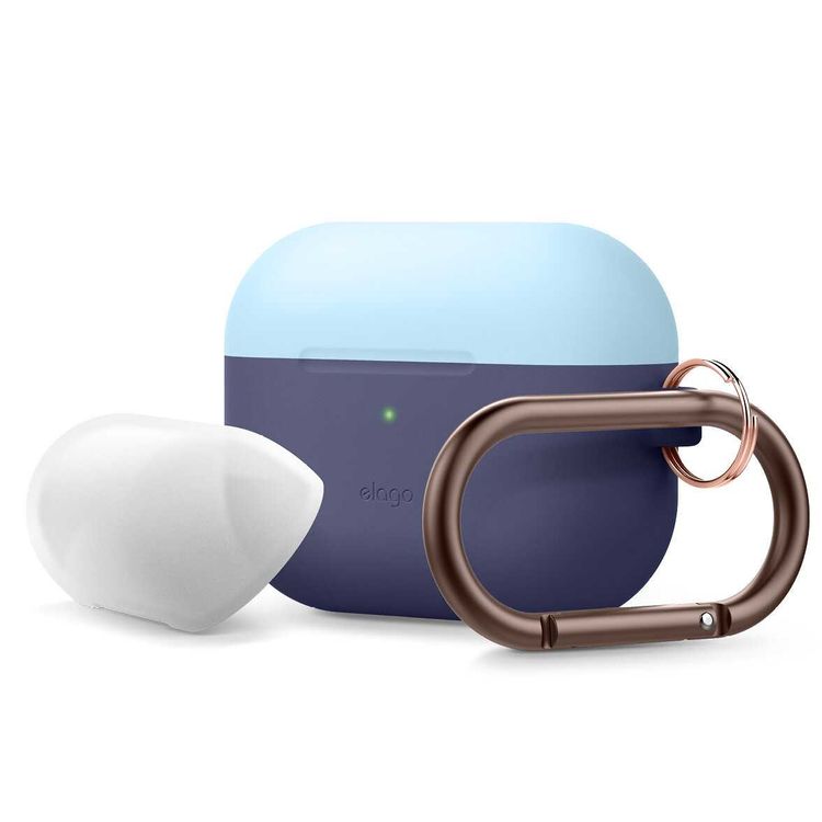 Elago Duo Hang Case for Apple Airpods Pro - Top-Pastel Blue / Nightglow Blue, Bottom-Jean Indigo