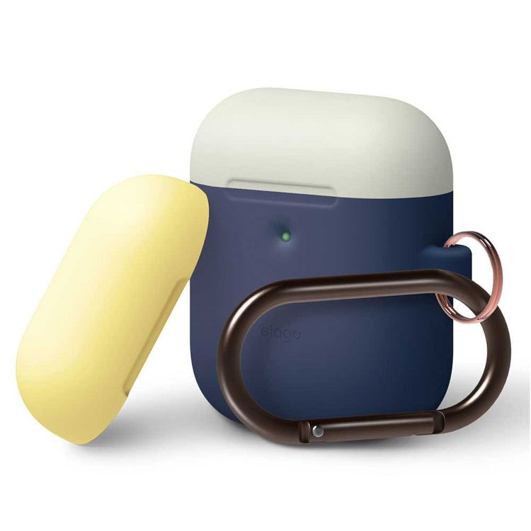 Elago Duo Hang Silicone Case with Apple AirPods Case 1 & 2 Generation, Dustproof and Absorbing Protective Cover with Hang Case Body -Jean Indigo/Top-Classic White, Yellow