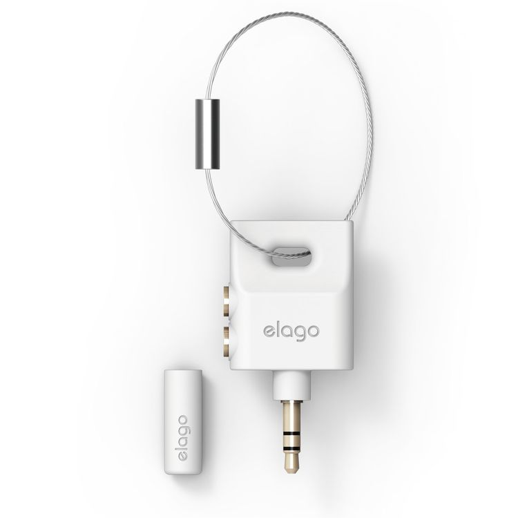 Elago Keyring Headphone Splitter,TPE Durable, Impact Resistant, Lightweight, Share through One of the Two Terminals Using Earphones (3.5mm)-White