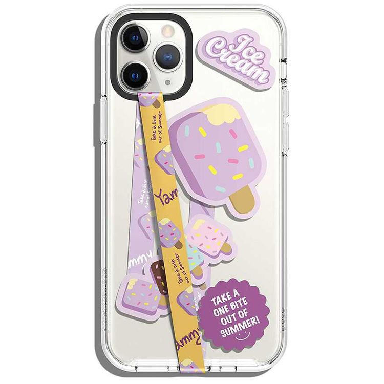 Elago Phone Strap for Smartphones, Stays Securely Attached, Double Sided Design for Variation, More Freedom to do more w/ Secure Strap - Yellow Strap & Blueberry Ice Cream