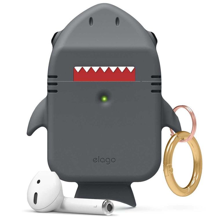Elago Shark Case Compatible for Apple Airpods, Protect with Style, Durable Premium Silicone, Special Anti-Slip Coating in Cap, Lightweight, Bring It Anywhere w/ You - Dark Gray