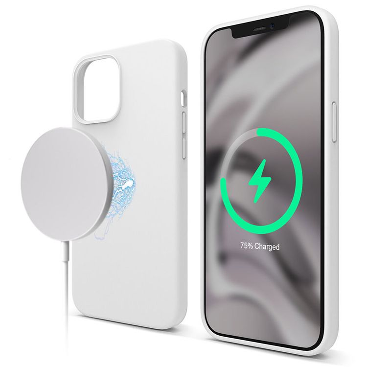 Elago Silicone Case Suitable with MagSafe, Back Shield Case Compatible for iPhone 12 Pro Max (6.7") Anti-Scratch, Easy Access to All Ports - White