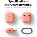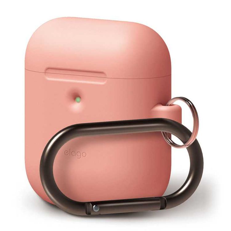 Elago Silicone Case with Anti-Lost Keychain Compatible with Apple AirPods 1/2 Wireless Charging Case, Front LED Visible, Anti-Slip Coating Inside, Premium Silicone - Peach