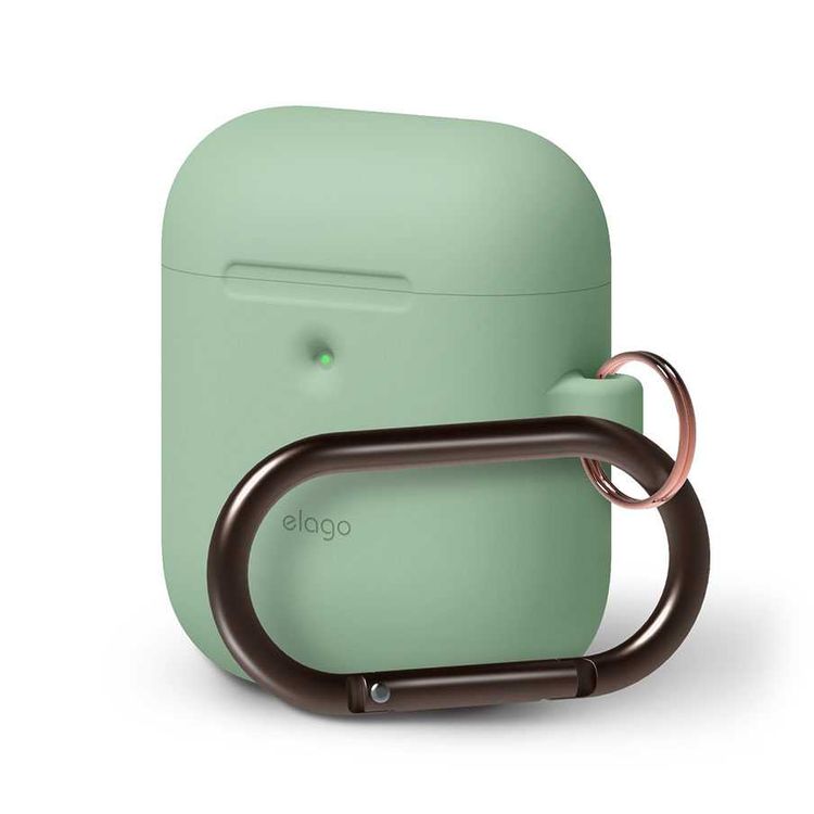 Elago Silicone Case with Anti-Lost Keychain Compatible with Apple AirPods 1/2 Wireless Charging Case, Front LED Visible, Anti-Slip Coating Inside, Premium Silicone - Pastel Green