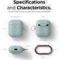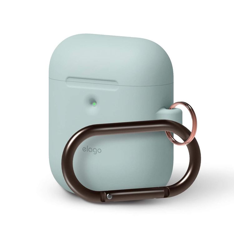 Elago Silicone Case with Anti-Lost Keychain Compatible with Apple AirPods 1/2 Wireless Charging Case, Front LED Visible, Anti-Slip Coating Inside, Premium Silicone - Baby Mint