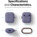 Elago Silicone Case with Anti-Lost Keychain Compatible with Apple AirPods 1/2 Wireless Charging Case, Front LED Visible, Anti-Slip Coating Inside, Premium Silicone - Lavender Gray