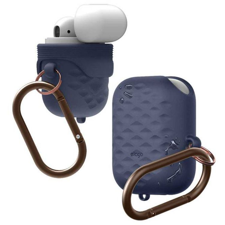 Elago Waterproof Active Case Compatible for Apple Airpods, Waterproof & Dustproof, Convenient for Charging, Aluminum Carabiner for Belt Strap/Bag, Impact Resistant - Jean Indigo