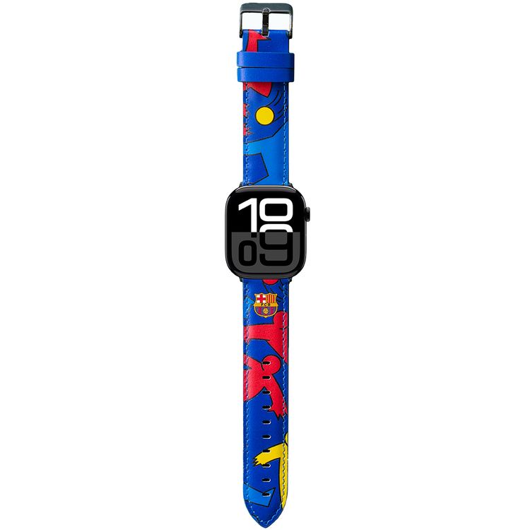FC Barcelona Real Leather Band for Apple Watch 49mm, Handcraft Premium Material, Skin-Friendly, Pin & Tuck Closure Type, Durable & Soft - Silhouettes Playing