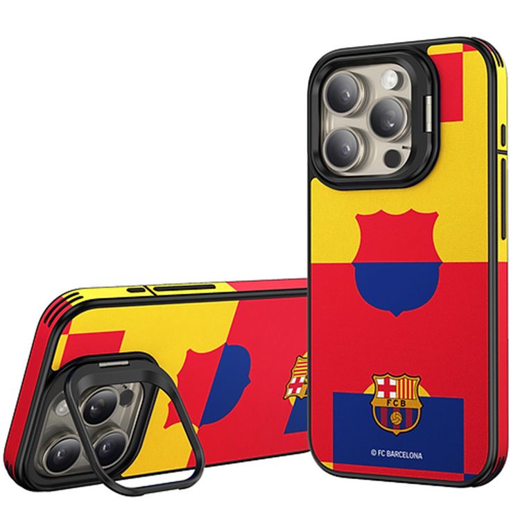 FC Barcelona Magnetic Case for iPhone 16 Pro Max with MagSafe Compatibility, Built-in Stand, Premium Synthetic Leather Material, Neodymium Magnet, Anti-Shock Protection, Handcraft Made - Multicolor Field