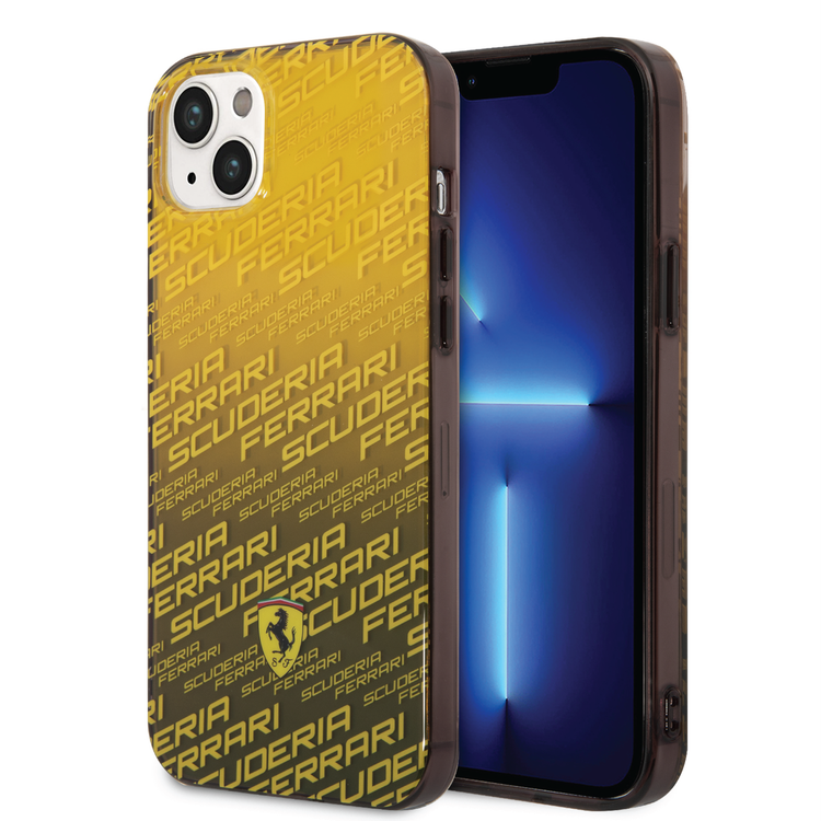 Ferrari Gradient PC/TPU Case with Allover Scuderia & Dyed Bumper iPhone 14 Plus Compatibility - Yellow