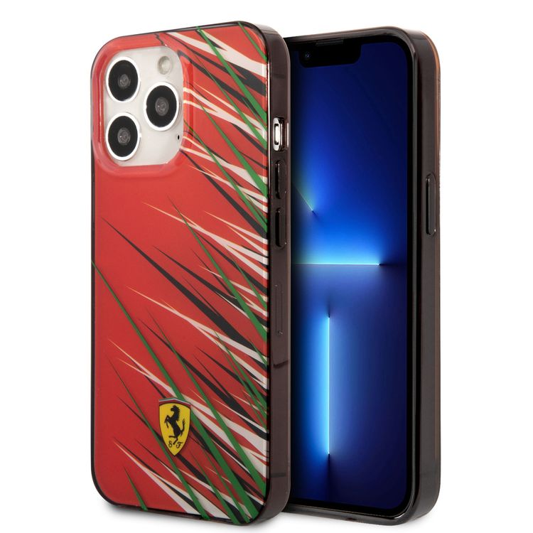 FERRARI HC PC/TPU Double Layer Grass Hard Case, Drop protection, Compatible with iPhone 13 Pro - Red