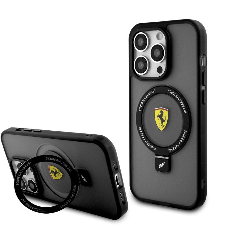 Ferrari iPhone 15 Pro For Magsafe Ring Stand Case - Black