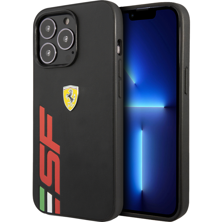 Ferrari Leather Printed Big SF Logo Hard case, Drop protection, Compatible with iPhone 13 Pro - Black