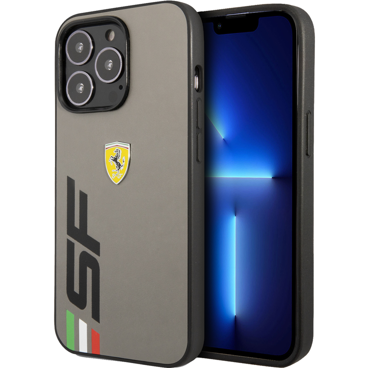 Ferrari Leather Printed Big SF Logo Hard case, Drop protection, Compatible with iPhone 13 Pro - Grey