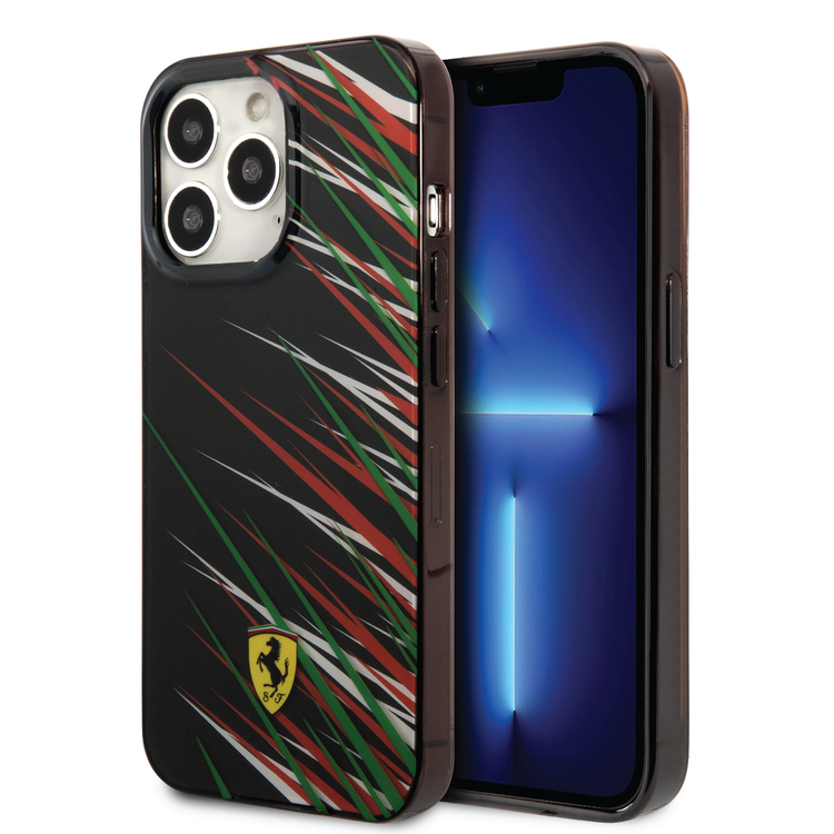 Ferrari PC/TPU Case with Double Layer Grass Print iPhone 14 Pro Compatibility - Black