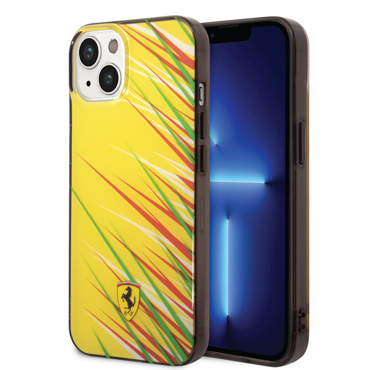 Ferrari PC/TPU Case with Double Layer Grass Print iPhone 14 Compatibility - Yellow