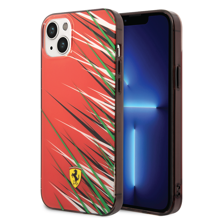 Ferrari PC/TPU Case with Double Layer Grass Print iPhone 14 Plus Compatibility - Red