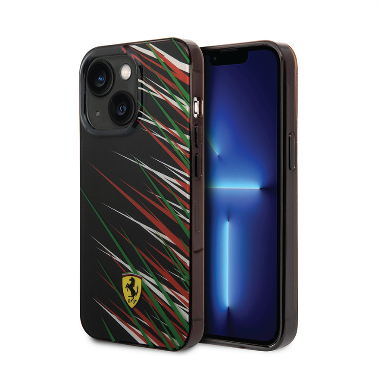 Ferrari PC/TPU Case with Double Layer Grass Print iPhone 14 Plus Compatibility - Black