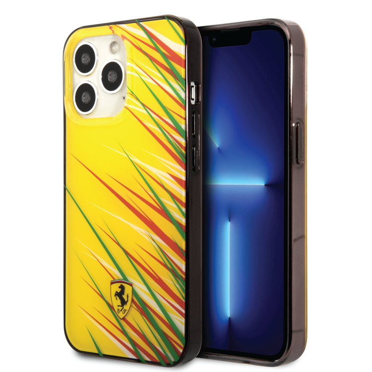 Ferrari PC/TPU Case with Double Layer Grass Print iPhone 14 Pro Max Compatibility - Yellow