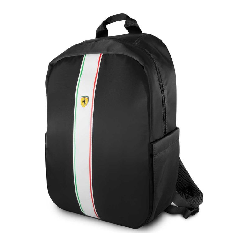 Ferrari Pista Metal Logo on Track 15.6" Backpack with USB Port, Multiple Pockets, Adjustable Shoulder Strap, Nylon & Polyester Lining Material - Black