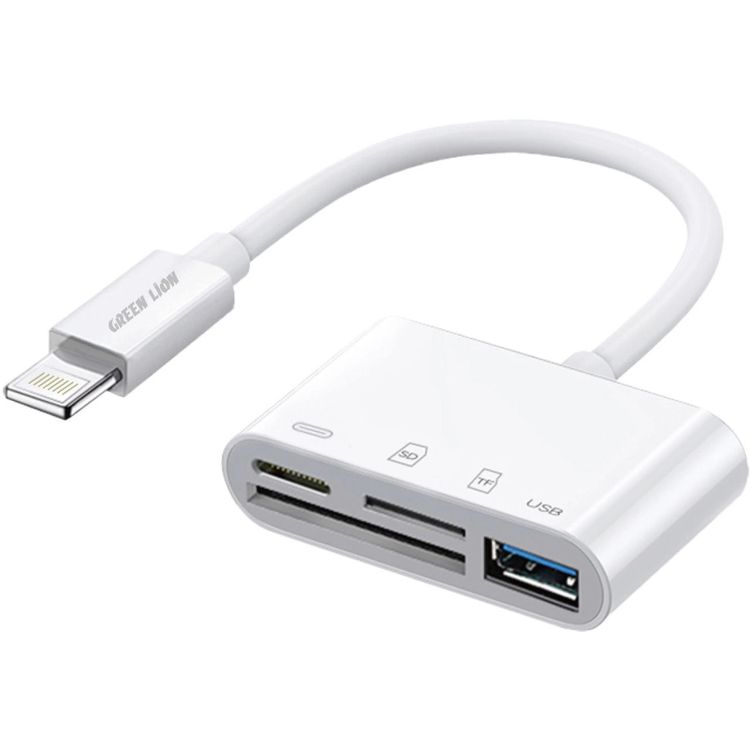 Green 4-In-1 Lightning OTG Adapter with SD TF Card Slots, Type-C and USB-A Ports