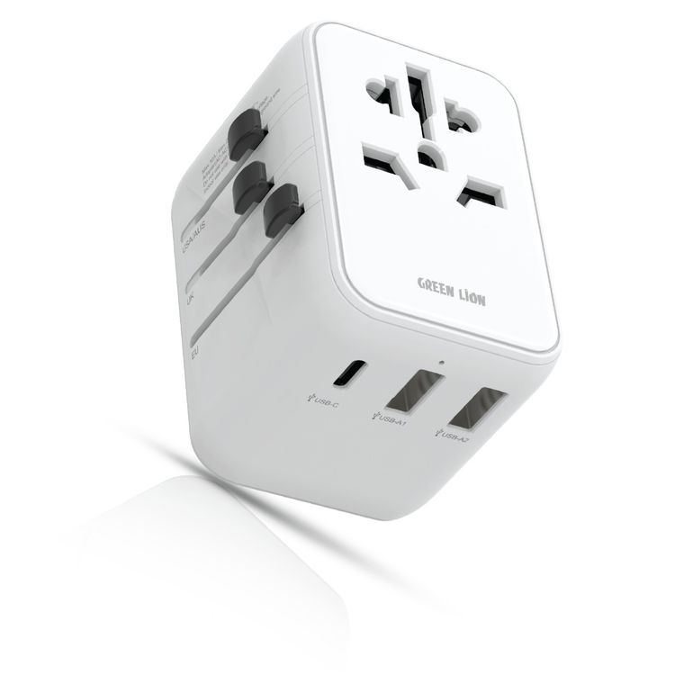 Green Lion 12 W Universal Travel Adapter, Short Circuit Protection, 2500W Max Rating, Super Compact, Travel Frindly - White