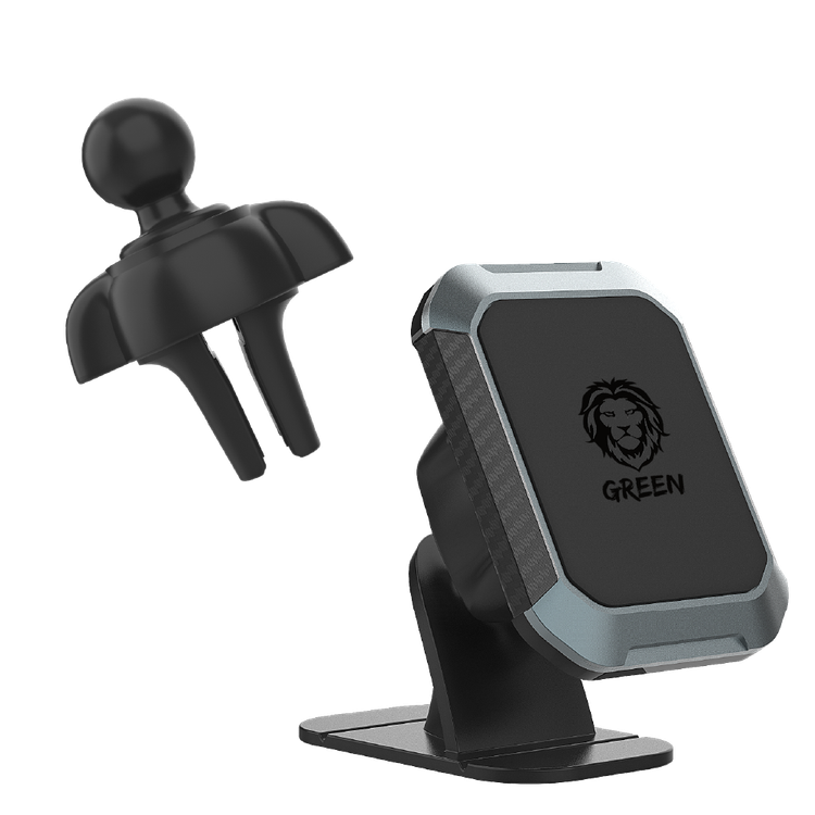 Green Lion 2-in-1 Magnetic Car Phone Holder for 3.4"-7" Devices, Air Vent Extension, 360° Rotation, One-Hand Operation, 4 Strong Magnets, Secure and Stable, Flexible Design - Black