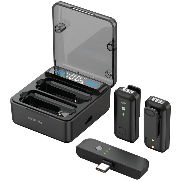Green Lion 2 IN 1 Microphone Digital Display, ANC Noise Reduction, Low Latency, Long Lasting Battery, 5H Working Time, Wireless Transmission, Lightweight, Portable & Compact - Black