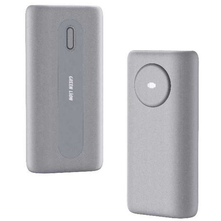 Green Lion 2 in 1 Power Bank 10000mAh with Wireless Watch Charger 2.5W, Fast Charge Support, Battery Powered, Material : ABS + PC - Grey