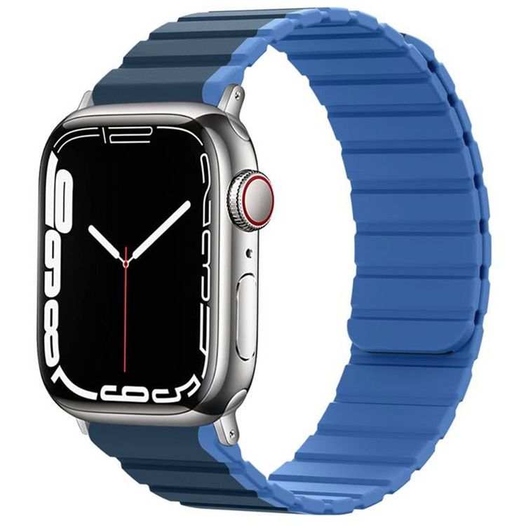 Green Lion 2-in-1 Silicone Watch Strap with Magnetic Closure for Apple Watch 44/45/49mm, Adjustable Strap, Easy Installation, Soft & Comfortable Fit - Dark Blue / Light Blue