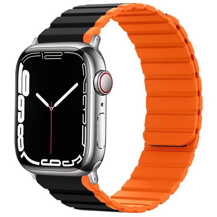 Green Lion 2-in-1 Silicone Watch Strap with Magnetic Closure for Apple Watch 44/45/49mm, Adjustable Strap, Easy Installation, Soft & Comfortable Fit - Black / Orange