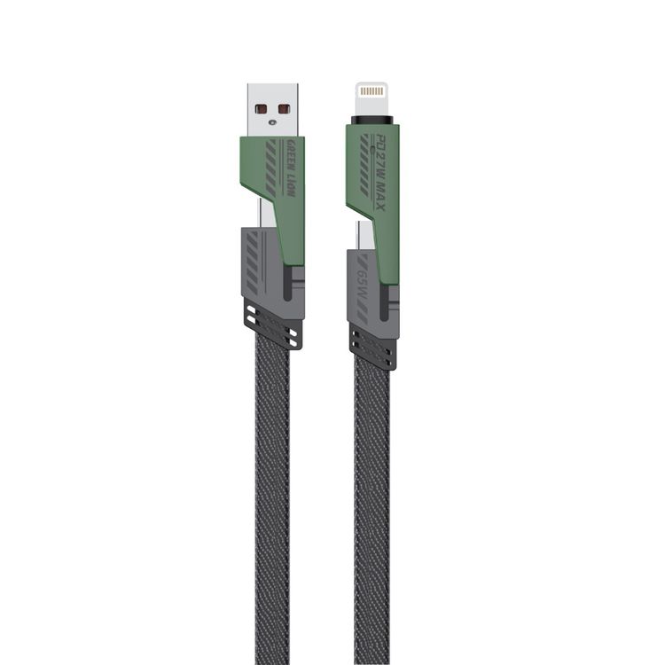 Green Lion 2 in 2 Braid Cable A to C and C to Ligtning, Charge & Sync, Secure & Safe, Wide Compatible, 480 Mbps Transfer Speed - Black